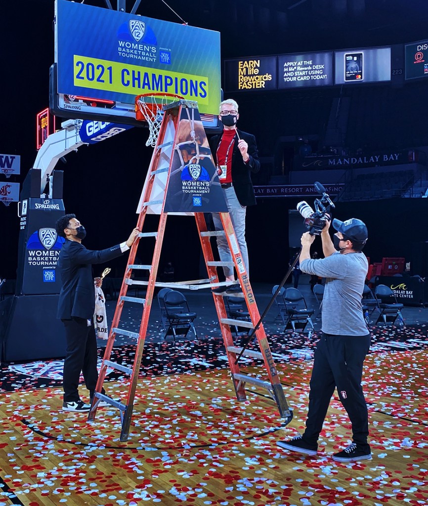 “I took the job not even knowing I would be covering women’s basketball, but I was super thankful,” says Treadway, who also works with men’s soccer and women’s water polo but loves working with the women’s basketball team. “At this point, I don’t see myself working in athletics if the sport of women’s basketball isn’t involved in some way.”