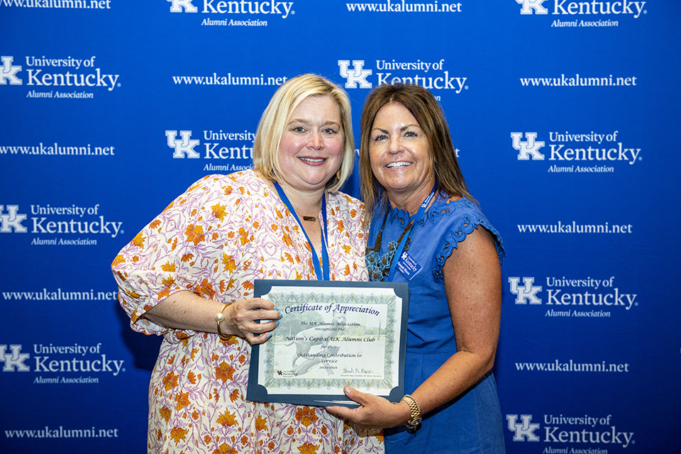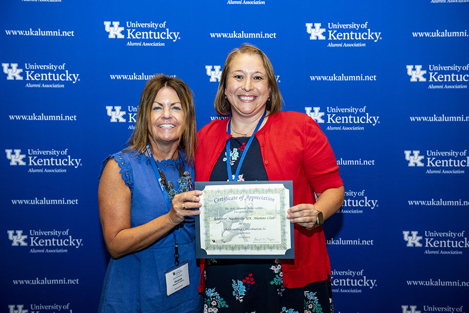 The UK Alumni Association recognized many of its clubs at the Alumni Service Awards and Club Awards dinner during the association’s annual Summer Workshop on Friday, June 18, held this year at the Embassy Suites by Lexington/UK Coldstream.