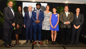 College of Arts & Sciences Torch Bearers Isaiah Brown, Cassie Bradley and Kortni Dubose and Torch of Excellence winner Arnold Farr