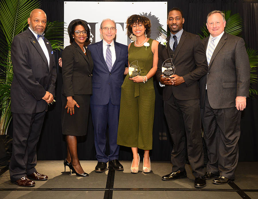 College of Health Sciences Torch Bearer Kennedy Guess and Torch of Excellence winner Andy Duclos